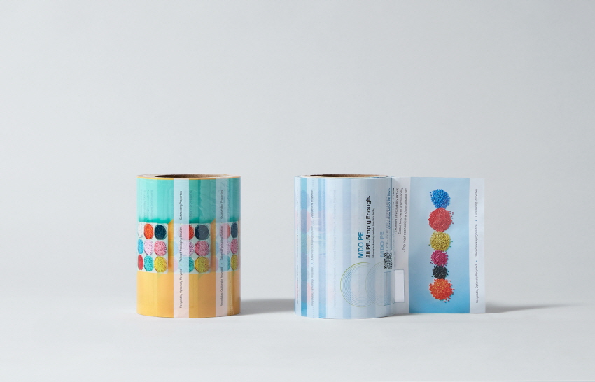 현재 페트(PET), 나일론(PA) 등이 혼합된 대부분의 포장 필름은 재활용이 어려운 ‘복합재질 플라스틱(OTHER)’으로 분류되는 반면에 단일소재는 재활용이 용이하지만 복합재질과 동등한 물성을 구현하기 위해 포장 필름이 두꺼워지는 경향이 있다.