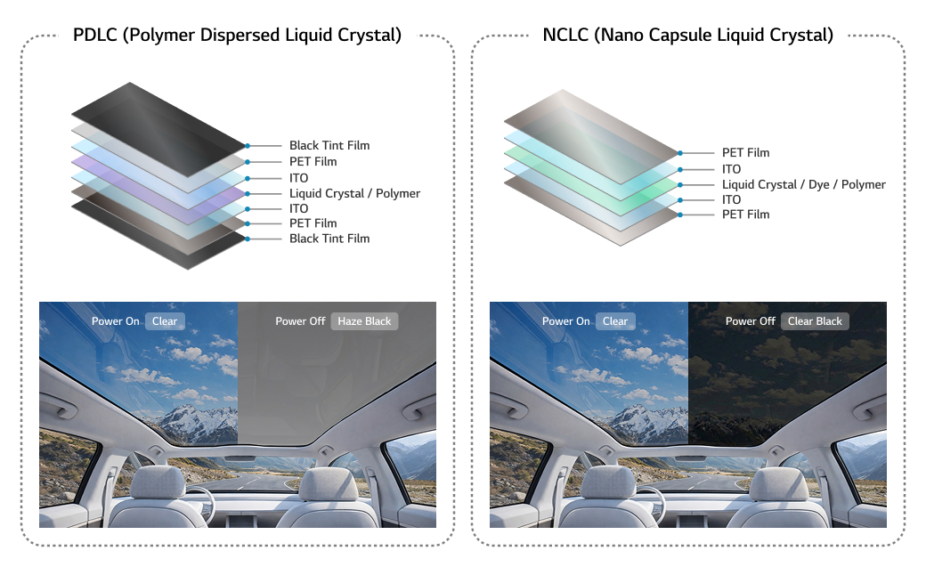 Minimizes optical scattering in the ON state to deliver distortion-free visibility and a heightened sense of openness